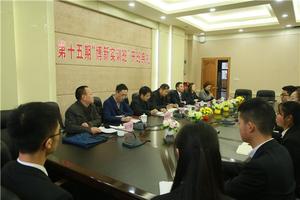 开班典礼由曾仁权教授主持,赵智华副主任首先宣读了第十五期“博新实训”班学员名单;随后学员代表庞雅艺代表全体同学做热情洋溢的发言;然后王峰董事长讲话鼓励同学们要做能干、能写、能说、能总结的四能新人;最后左福元教授讲话,左教授首先感谢思来公司从第九期至第十五期连续七年对“博新实训”班的支持,同时为同学们提出了三点要求:第一要有精英意识、第二要为学校卓越人才培养多献计献策,第三要知行合一。