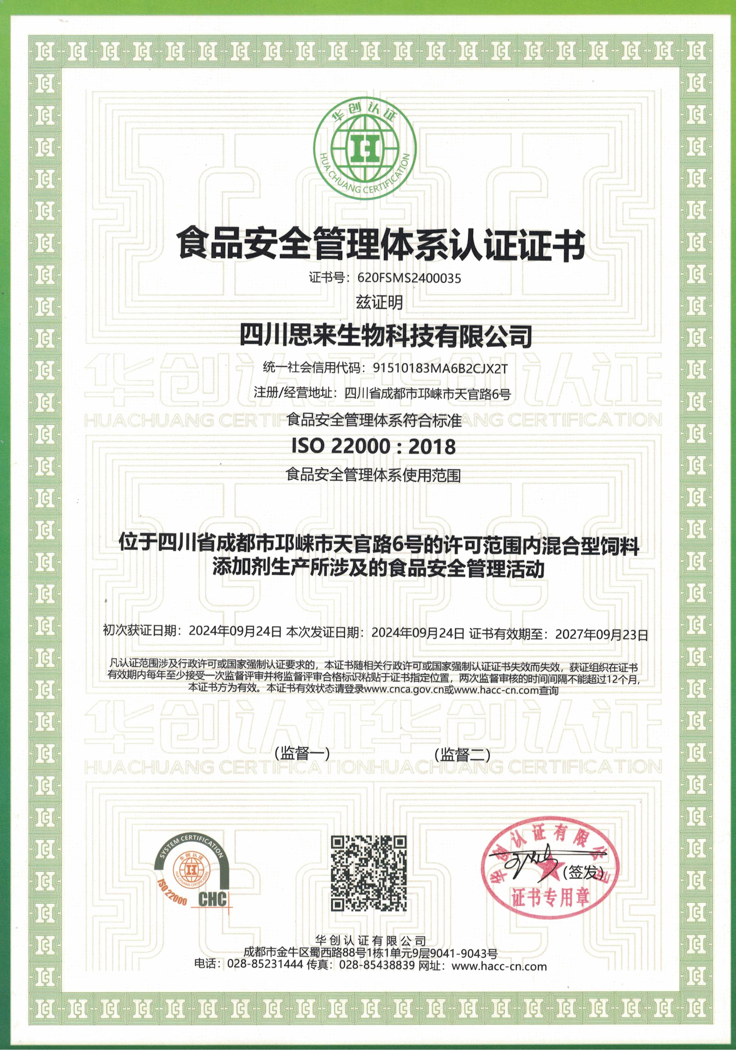 并于2024年9月24日为我司颁发了“食品安全管理体系认证证书”。